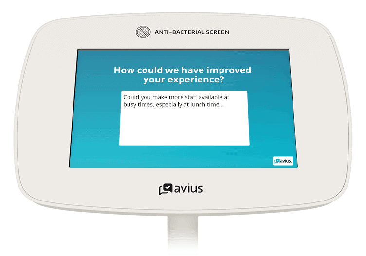 Make sure your survey kiosks are always turned on, clean, and placed in a high-footfall location. If kiosks are dirty or customers have to climb over things to reach them, you won't receive many responses.
