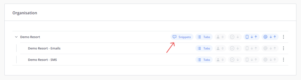 From there, press the Snippets button on your organization. If you don’t see this button, you may need to log out and log back in to enable the feature.