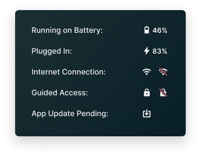 • - Whether the device is securely locked down to prevent misuse, using Guided Access on iOS or the Avius Launcher on Android.