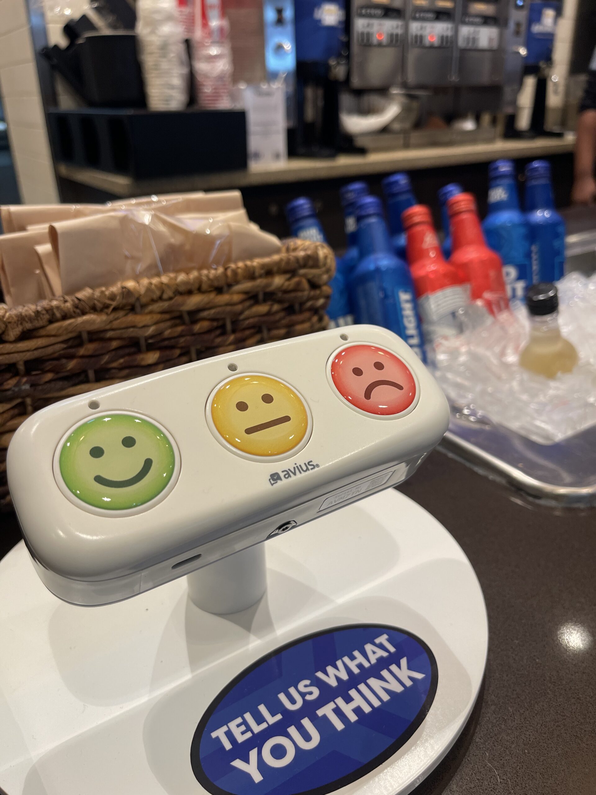 The smiley-face buttons capture instant, in-the-moment sentiment. By analyzing response volumes and trends, ATL can trigger deeper follow-up surveys via QR codes or tablets to uncover the root causes behind neutral or negative experiences — enabling targeted operational improvements while also identifying and celebrating positive service delivery.